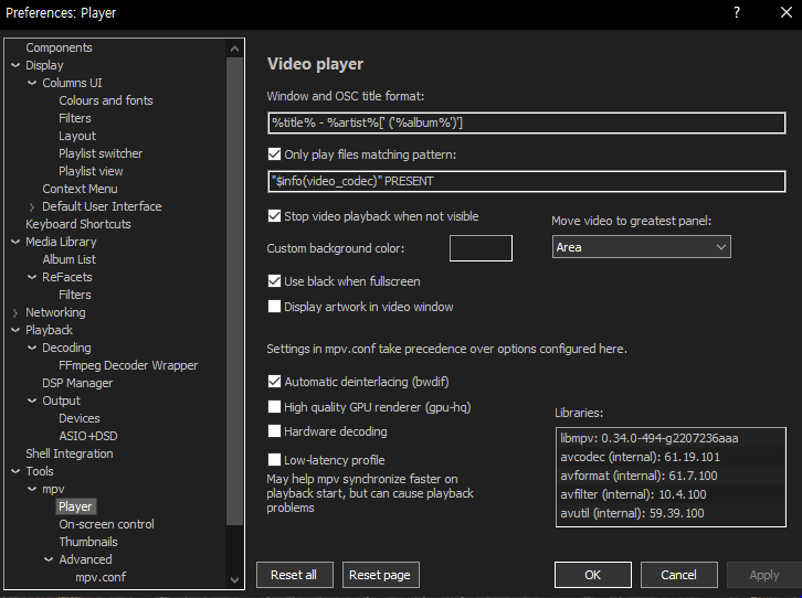 네이버 박스 푸바 공유 폴더 foobar2000 v2.25 폴더에 수정한 AIO, AIO 2, MPV P를 새로 올렸습니다. 자가 수정법은 간단합니다. 기존 것을 marc2K3가 수정해 준 다음 신형 플로그인으로 대체해 주면 됩니다. 다음 깃허브 링크를 눌러 공유 폴더에서 foo_mpv-0.6.12-beta-x64.fb2k-component를 다운로드받아 기존 것을 대체해 주면 됩니다.